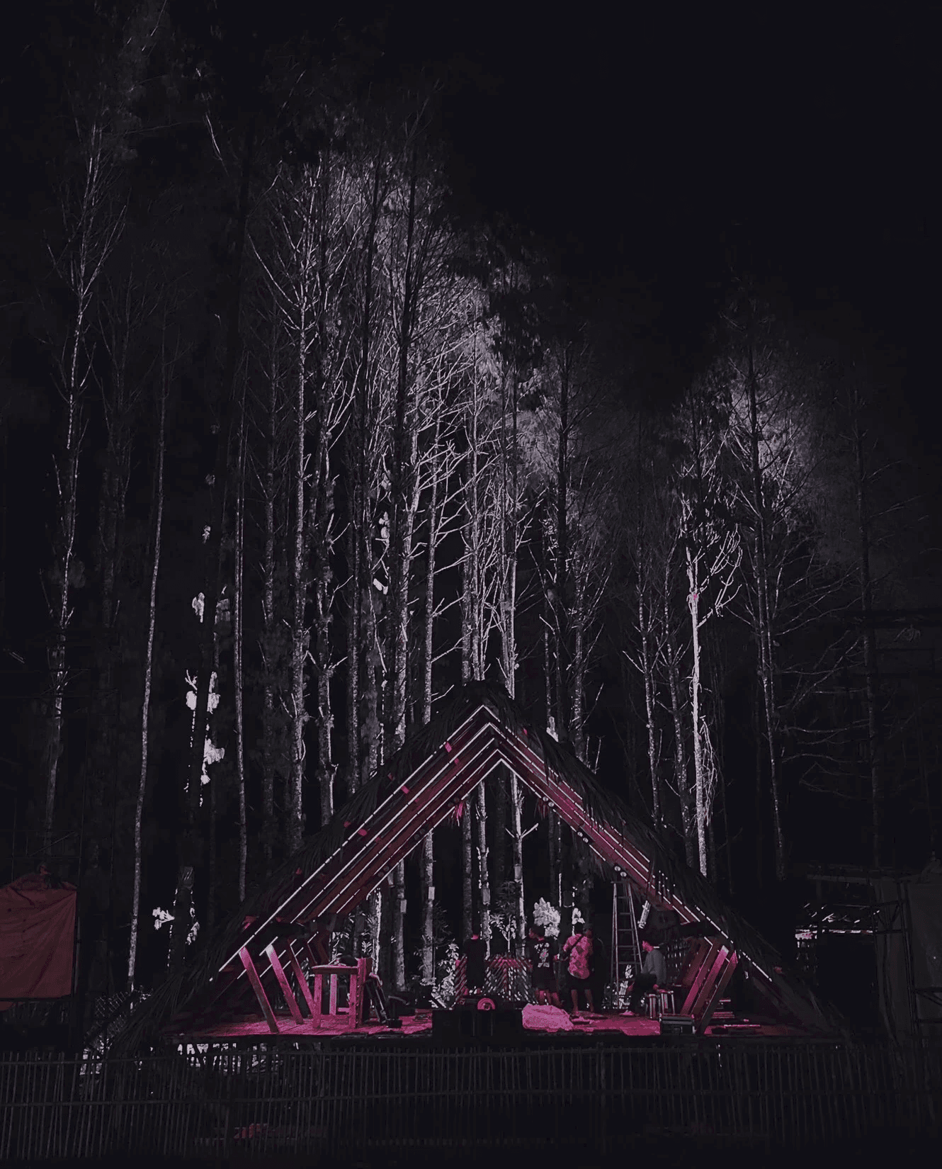 Stage design using locally sourced bamboo, and live light operations for the first edition of the electronic music Takar Stage at Ziro Festival. Lights were placed deep within the forest to create depth, casting shifting shadows across the trees, while projections on the natural backdrop brought the valley to life.